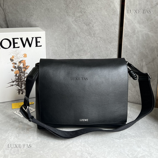 Black Flamenco Satchel In Shiny Supple Calfskin Leather Crossbody Bag for Men