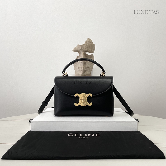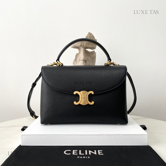 Black Medium Nino Bag In Smooth Satinated Calfskin Leather Handbag for Women