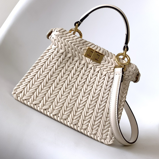 Camellia Interlace Peekaboo Iseeu Small Leather Handbag for Women