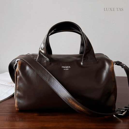 Dark Brown Small Nappa Leather Duffle Bag for Men
