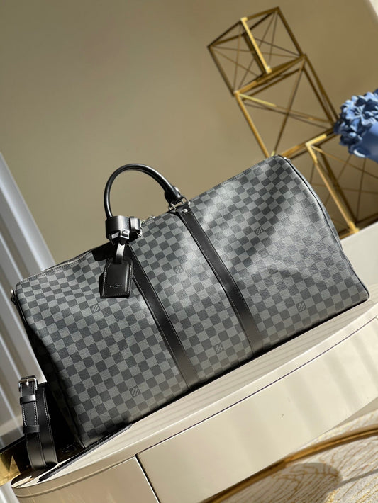 Damier Graphite Canvas Keepall Bandoulière 55 Leather Duffle Bag for Men and Women