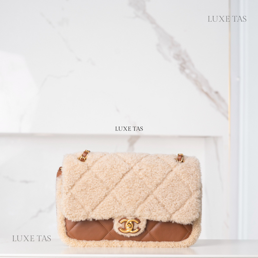 24K Teddy Bear-Shearling Flap Bag Leather Handbag for Women