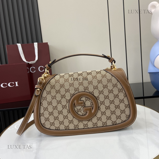 Blondie Medium Top Handle Bag Beige And Dark Brown Leather Handbag for Women