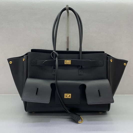 Aged-gold Hardware Bel Air Medium Carry All Bag In Black Leather Handbag for Women
