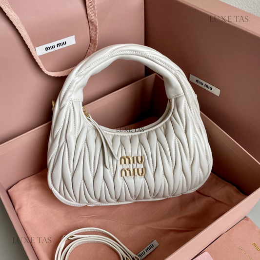 Wander Matelassé Nappa Leather Hobo Bag White Leather Handbag for Women