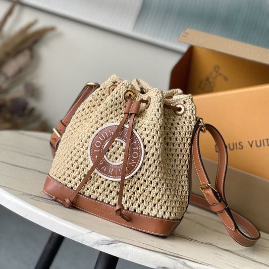 [LOW STOCK] Raffia Tan Noé BB Bucket Bag for Women
