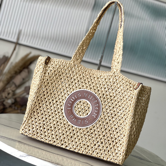 Raffia Tan OnTheGo MM Tote Bag for Women