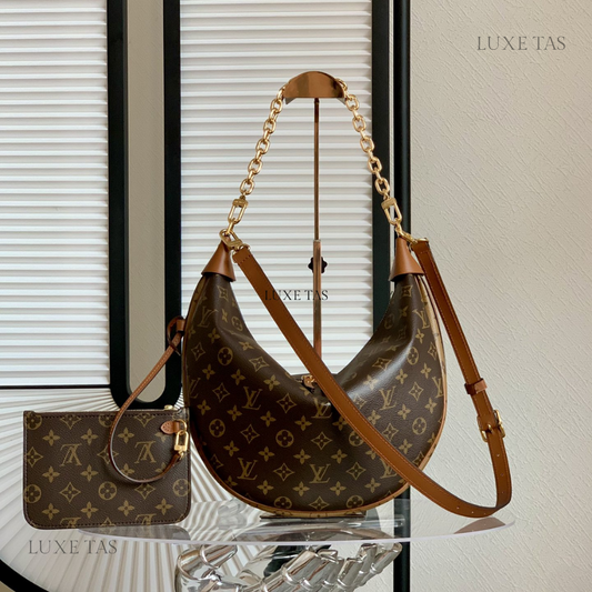 Monogram Canvas Loop Hobo Leather Tote Bag for Women