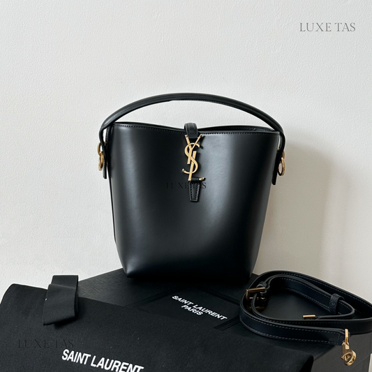 Black Le 37 Small In Shiny Leather Leather Bucket Bag for Women