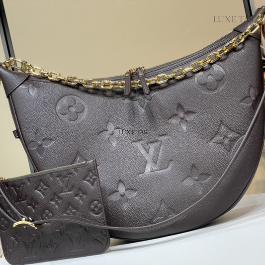 Chocolate Monogram Empreinte Leather Loop Hobo Leather Crossbody Bag for Women