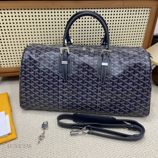 Navy Blue Boston 45 Bag Leather Duffle Bag