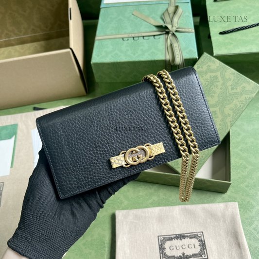 Black Chain Wallet With Interlocking G Python Bow Leather Wallet for Women