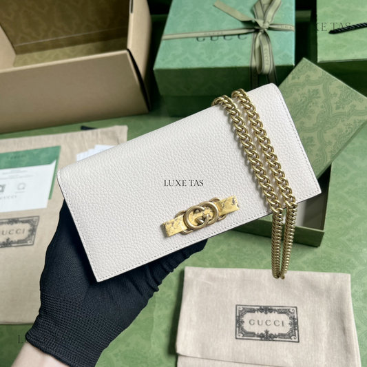 Blondie Medium Chain Wallet White Leather Cross Body Bag for Women