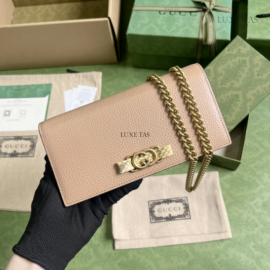 Rose Beige Chain Wallet With Interlocking G Python Bow Leather Wallet for Women