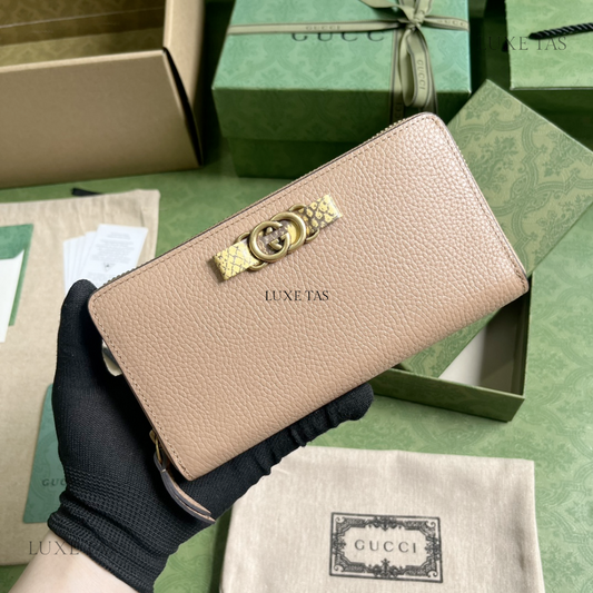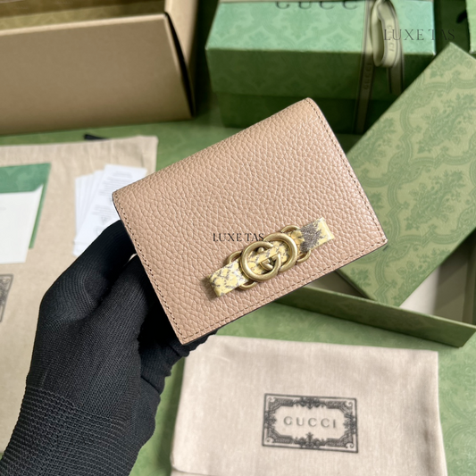 Rose Beige Wallet With Interlocking G Python Bow Leather Wallet for Women