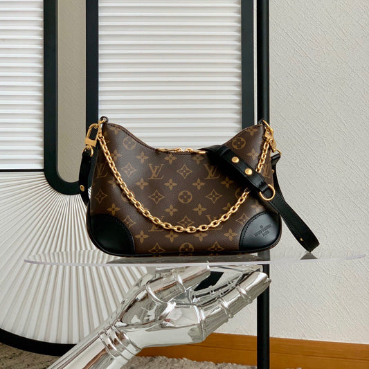 Black Boulogne Monogram Canvas Leather Bag Leather Crossbody Bag for Women