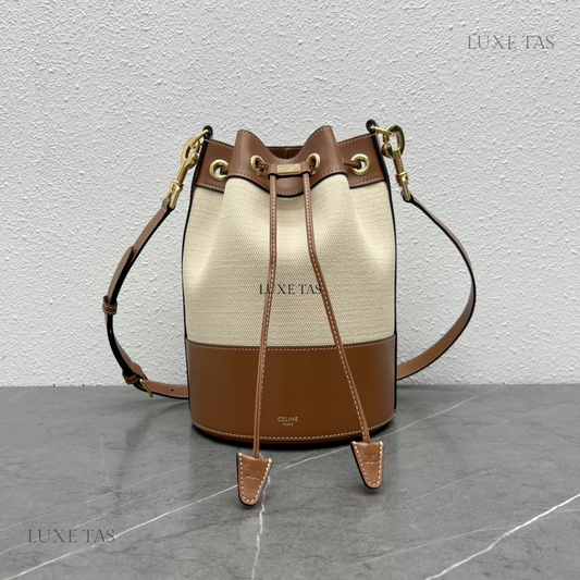 Petit Cabas Marin à Cordon En Textile Et Veau Cuir Naturel / Tan Sac Seau pour Femme