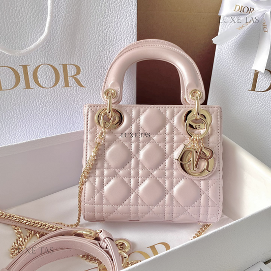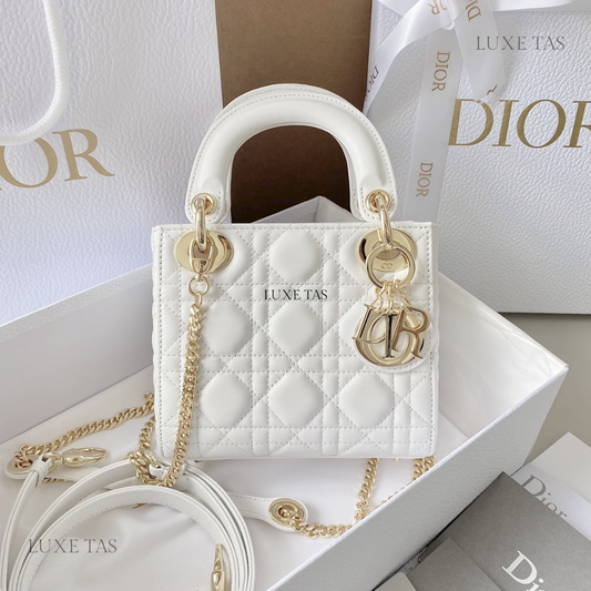 Latte Cannage Lambskin Mini Lady D Bag Sac à main en cuir pour femme