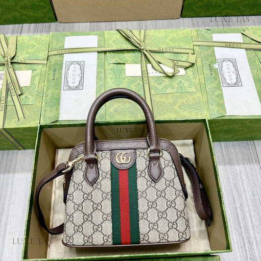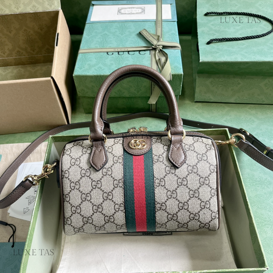 Sac à main en cuir beige et ébène Ophidia GG petit sac à poignée supérieure pour femme