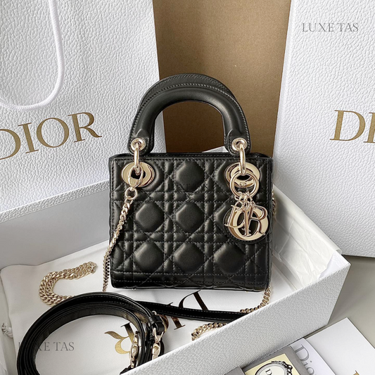 Sac à main en cuir Cannage Lambskin Mini Lady D Bag noir pour femme