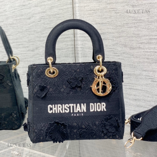 Sac à main en cuir noir avec broderie D-Lace Medium Lady D-Lite pour femme