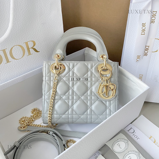 Placid Blue Cannage Lambskin Mini Lady D Bag Sac à main en cuir pour femme