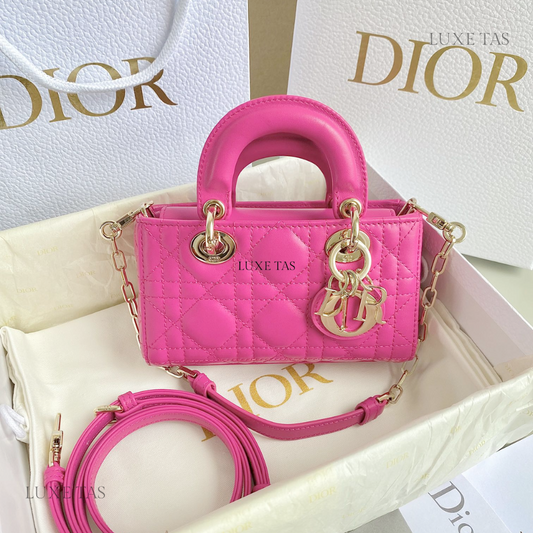 Rani Rose Cannage Lambskin Lady D-Joy Micro Bag Sac à main en cuir pour femme